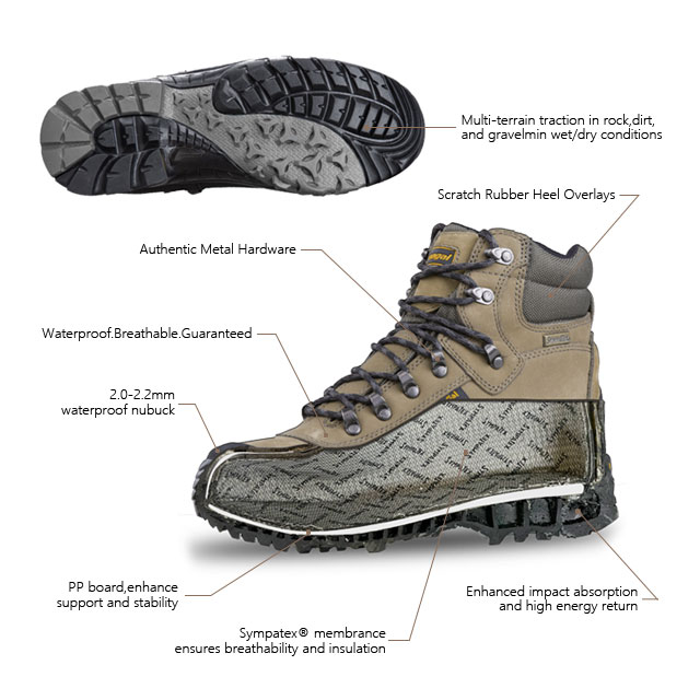 La chaussure intérieure est recouverte de chaussettes imperméables allemandes Sympatex qui sont respirantes et imperméables, gardant vos pieds au sec à tout moment.