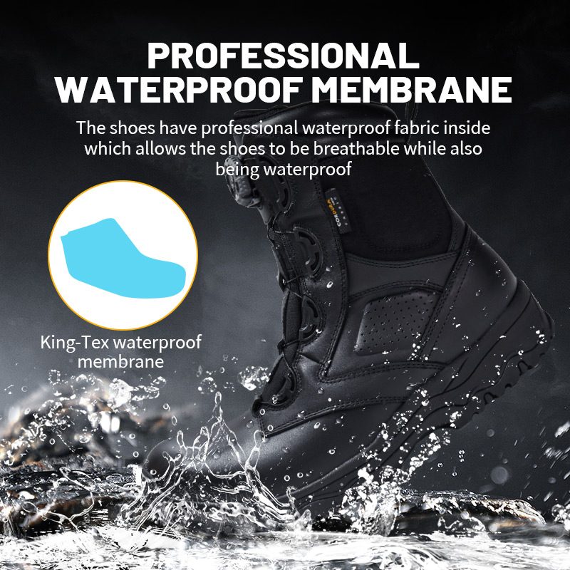 Construit avec une membrane imperméable professionnelle qui empêche l'eau de pénétrer tout en laissant les pieds respirer, pour que vous restiez au sec et non en sueur.